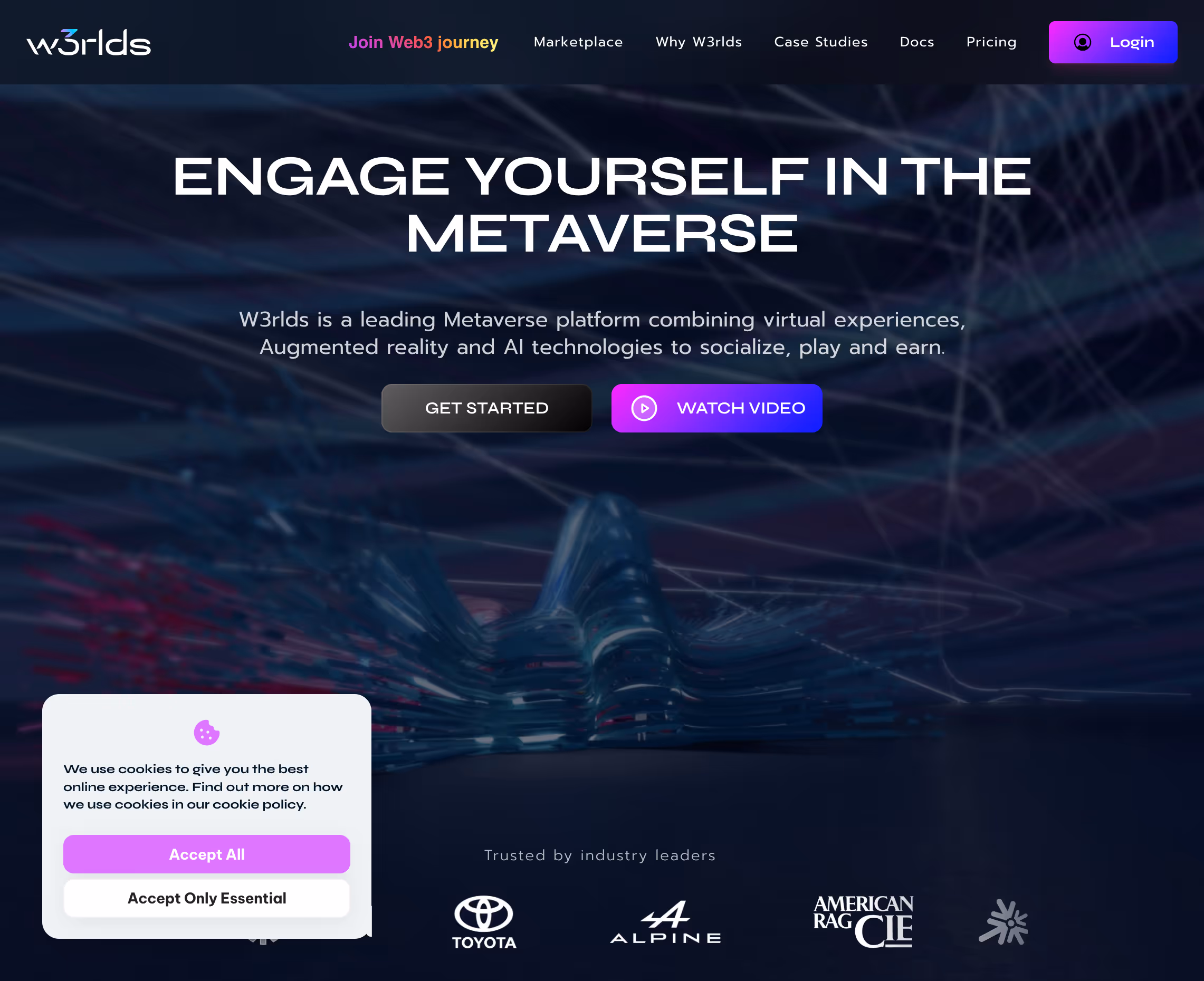 W3rlds uses a proprietary WebGL/WebXR platform that allows businesses to create branded virtual spaces and storefronts accessible in-browser.