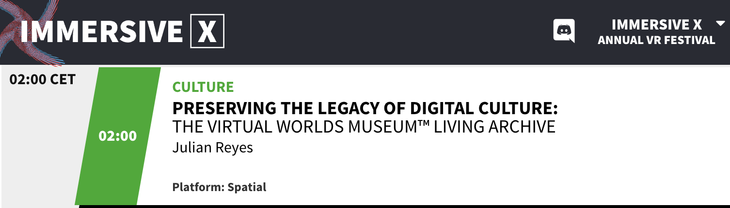 Presented at IMMERSIVE X in Spatial, highlighting how the Virtual Worlds Museum maps, preserves, and showcases virtual worlds while exploring digital archiving, interoperability, ethics, AI, and the organizations shaping XR’s future.